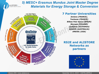 Innym ważnym elementem działań Alistore Noe i Alistore ERI są programy dydaktyczne. Już w 2004 roku opracowano program studiów magisterskich w zakresie konwersji i akumulacji energii o akronimie MESC (Materials for Energy Storage and Conversion). Od początku istnienia programu Politechnika Warszawska (Wydziały Chemiczny, Fizyki, Elektryczny oraz Studium Języków Obcych) bierze aktywny udział w jego realizacji. Zajęcia na jednym z semestrów odbywają się na Politechnice Warszawskiej i są obowiązkowe dla wszystkich uczestników programu. Jak dotychczas w naszej części programu wzięło udział ponad 300 studentów zagranicznych. Gościliśmy też na Politechnice Warszawskiej grupę zagranicznych wykładowców (Prof. Steve Greenbaum - City University of New York - USA, Prof. James Stevens University of Guelph - Canada, Prof. S.H. Chung - City University of New York - USA, Prof. Andrzej Więckowski - University Urbana Champaing – Illinois - USA, Prof. Agnieszka Pawlicka - Universisty of Sao Paulo - Brazylia).