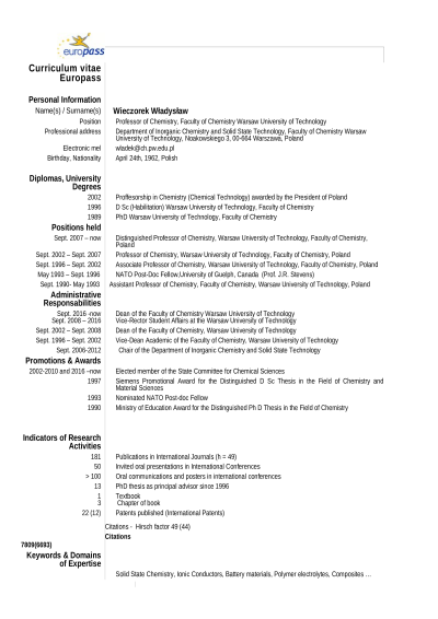 W roku 1989 obroniłem pracę doktorską pt. „Wysokoprzewodzące modyfikowane stałe elektrolity polieterowe", uzyskując stopień doktora nauk technicznych. Promotorem mojej pracy był prof. dr hab. Jan Przyłuski. Praca ta została wyróżniona przez Radę Wydziału Chemicznego PW; otrzymałem za nią także nagrodę Ministra Edukacji Narodowej (indywidualną, III stopnia, za osiągnięcia w dziedzinie badań naukowych). W roku 1996 przedstawiłem Radzie Wydziału Chemicznego rozprawę pt. „Composite polyether based electrolytes” i zdałem kolokwium habilitacyjne. Rada Wydziału nadała mi stopień doktora habilitowanego nauk chemicznych, co zostało potwierdzone przez CKK w listopadzie 1996 roku. Praca ta została nagrodzona nagrodą promocyjną Siemensa w roku 1997. Tytuł naukowy Profesora uzyskałem w roku 2002. W roku 2007 zostałem mianowany na stanowisko profesora zwyczajnego.